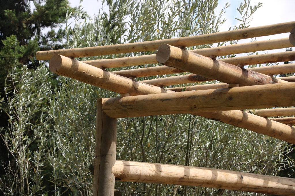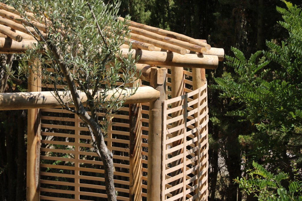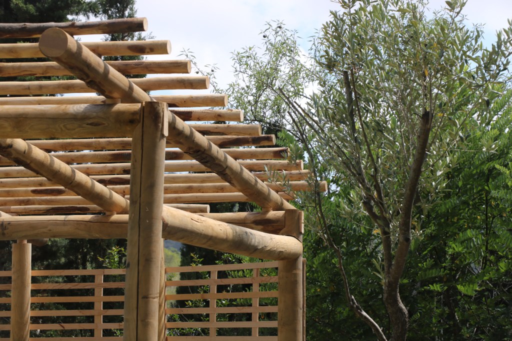 La madera de Castaño es una de las mejores maderas frondosas para utilizar en el exterior, la presencia natural de taninos la protegen de insectos y evitan que se pudra. Estos troncos provienen del Montseny y les Guilleries, a unos 50km del taller.
